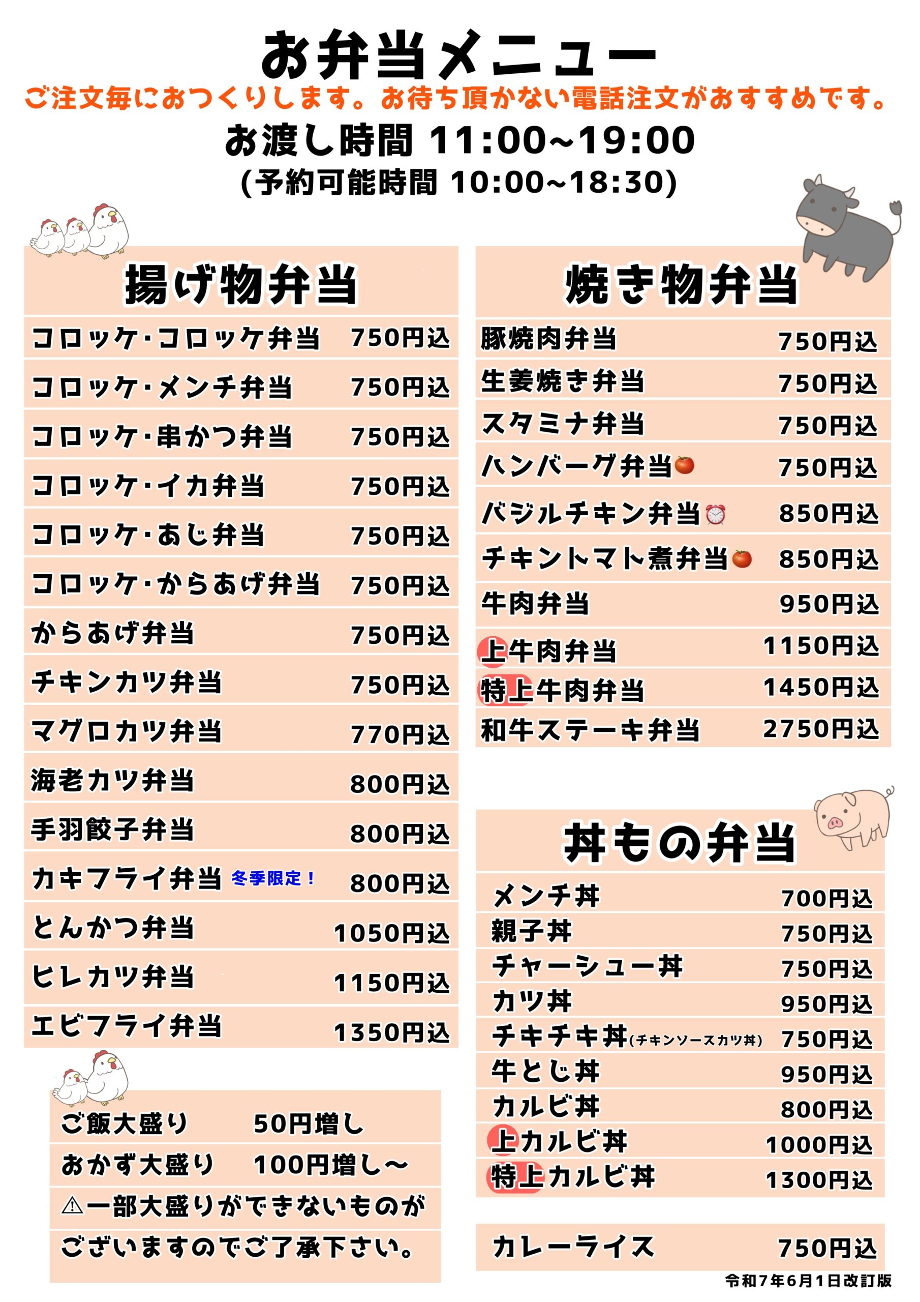 | チキンカツ弁当 | 750円(税込) |